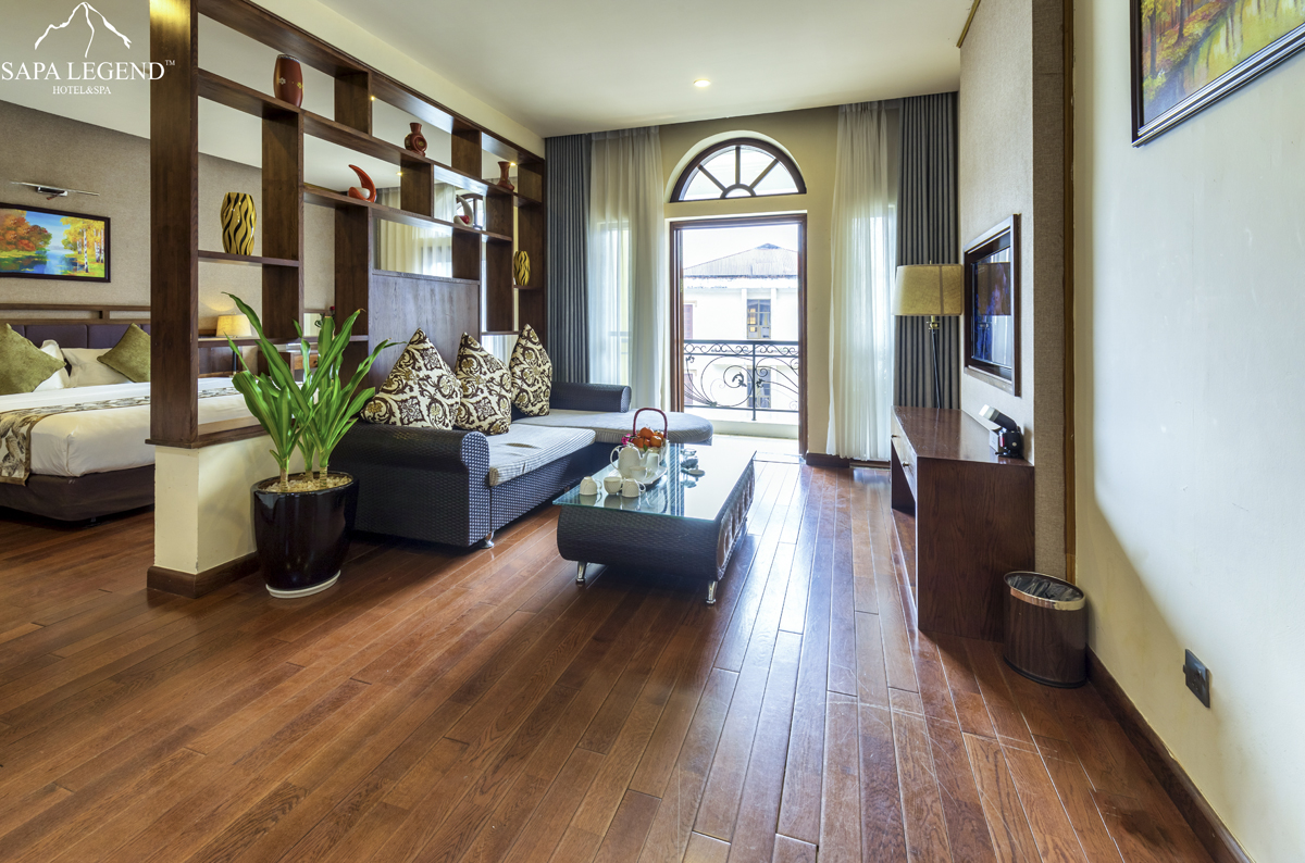 Phòng Deluxe thu hút du khách bởi phong cách thiết kế hiện đại, phòng ngủ ấm cúng với giường cỡ lớn, phòng tắm tinh tế cùng hiên ban công khoáng đạt nhìn ra phố và hồ nơi du khách có cơ hội tận hưởng tầm nhìn tuyệt đẹp của Sapa.